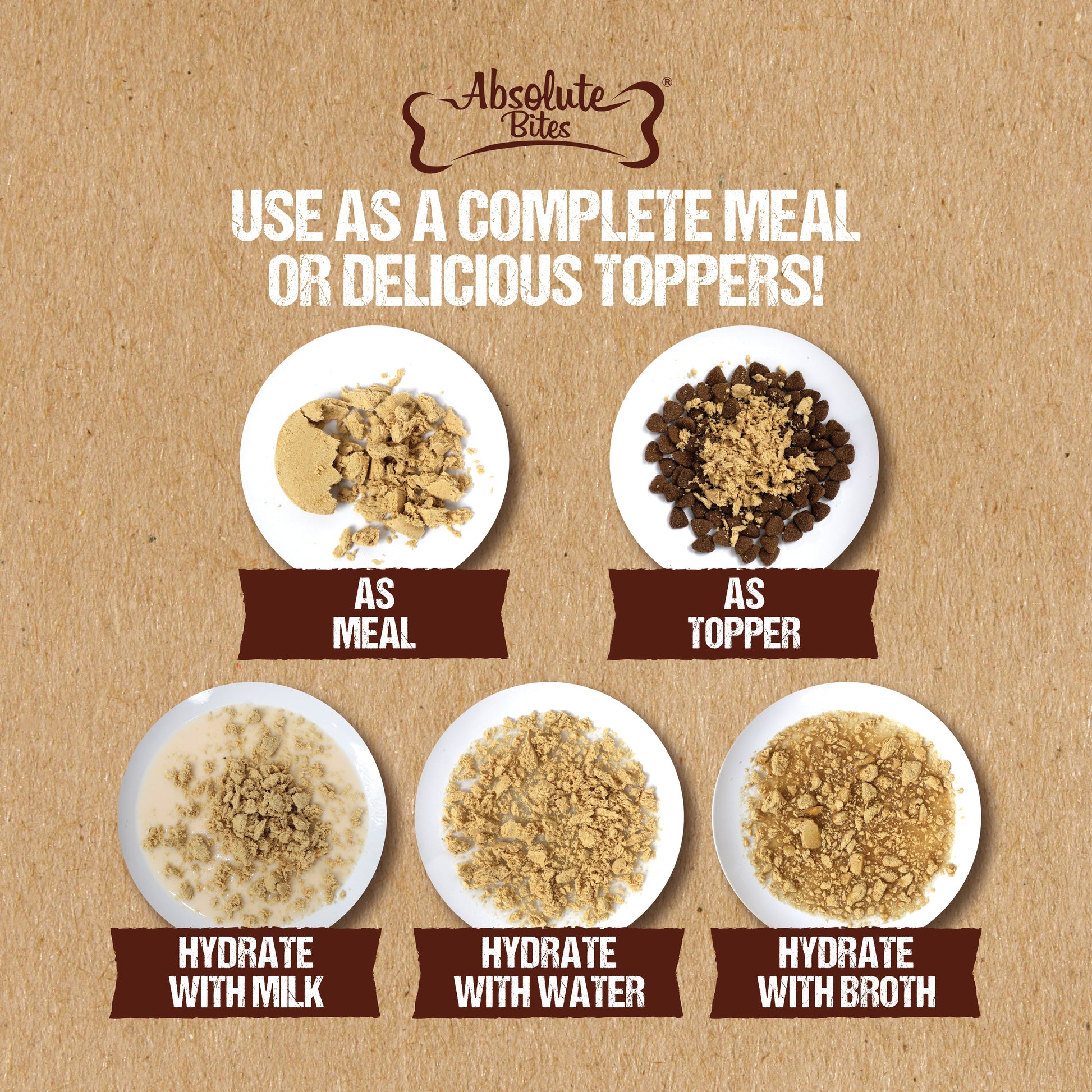 "USE AS A COMPLETE MEAL OR DELICIOUS TOPPERS!