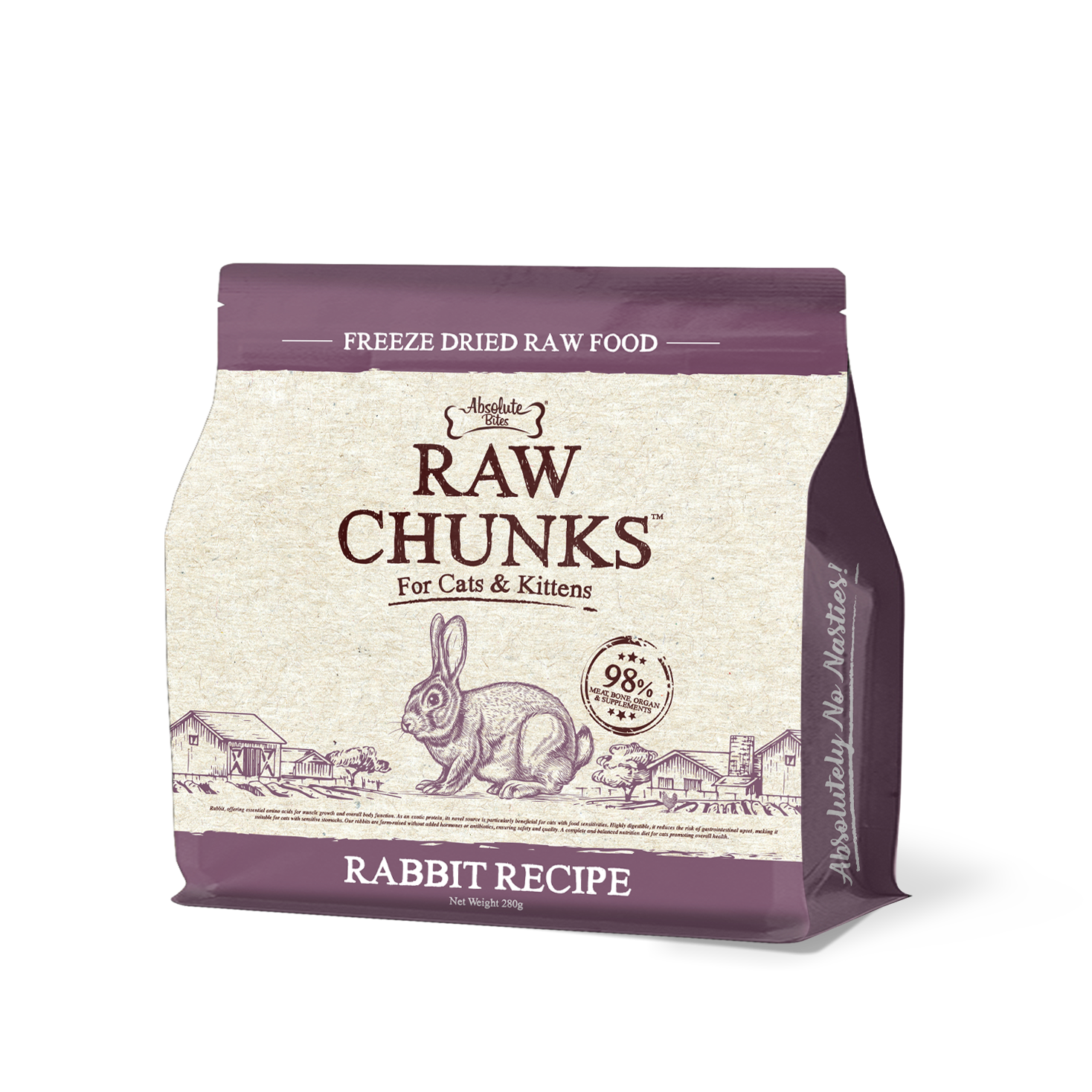 Absolute Bites Raw Chunks Freeze Dried Raw Food for Cats & Kittens | Rabbit Recipe