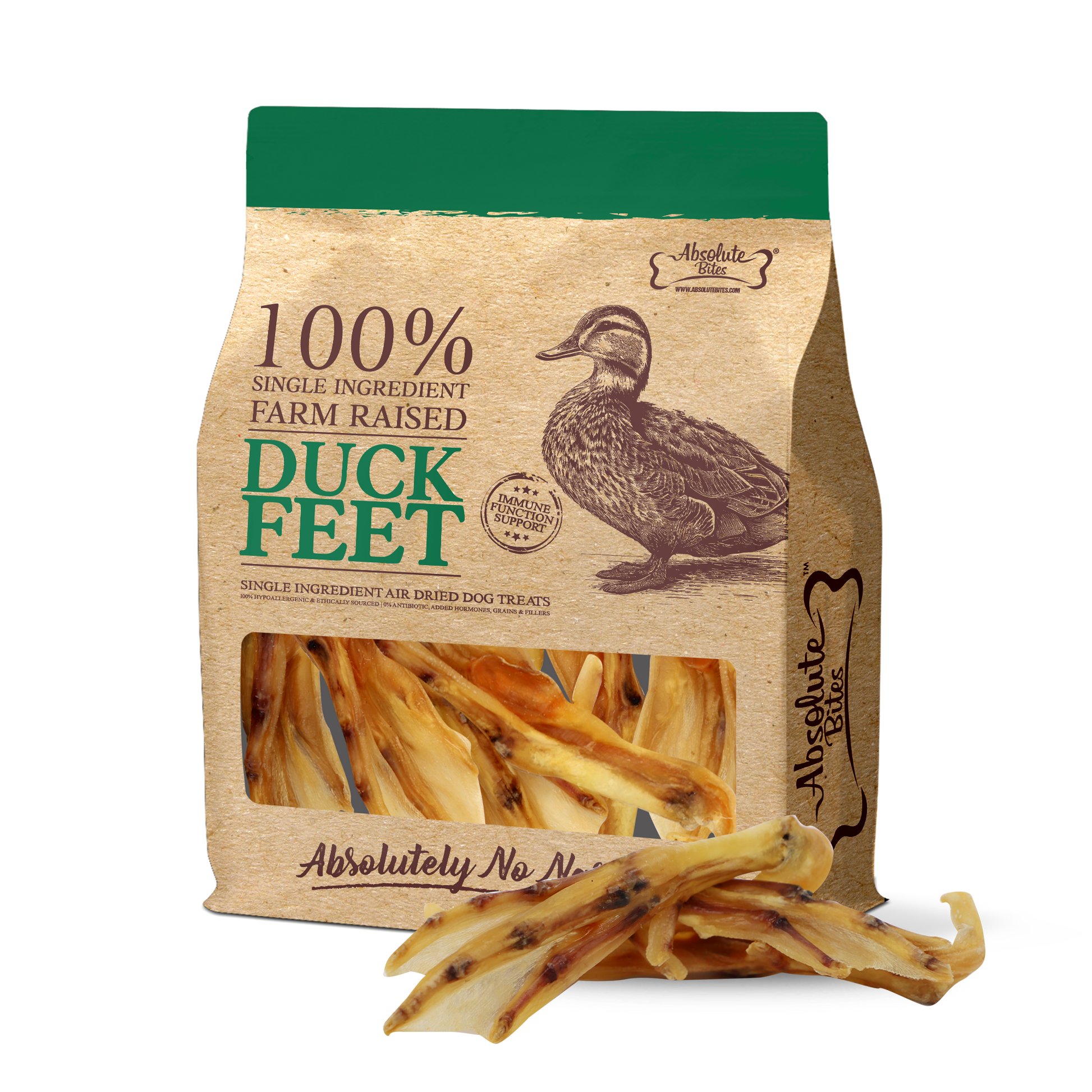 Absolute Bites Single Ingredient Air Dried Treats for Dogs - Farm Raised Duck Feet (16pcs)