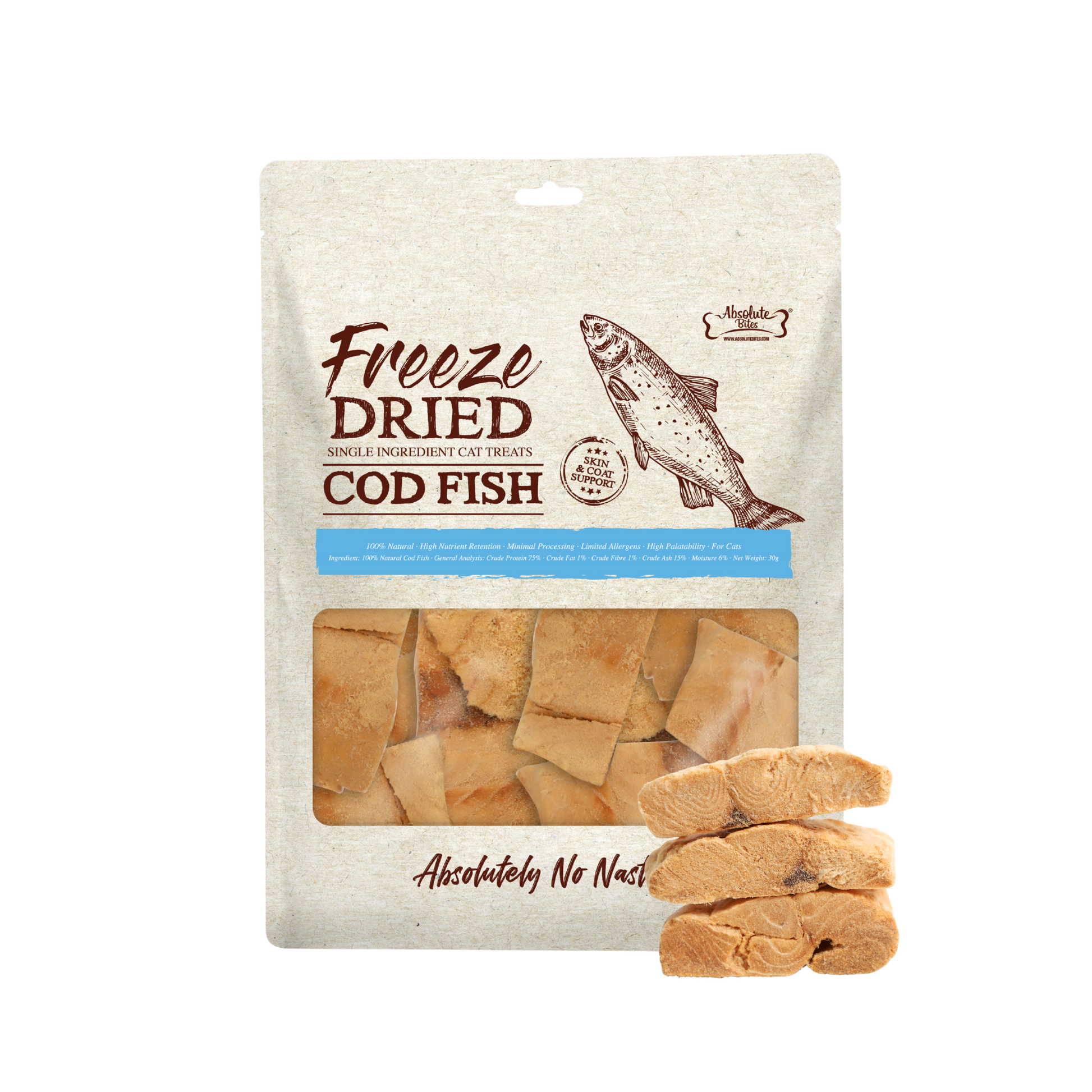 Absolute Bites Single Ingredient Freeze Dried Cat Treats - Cod Fish (30g)