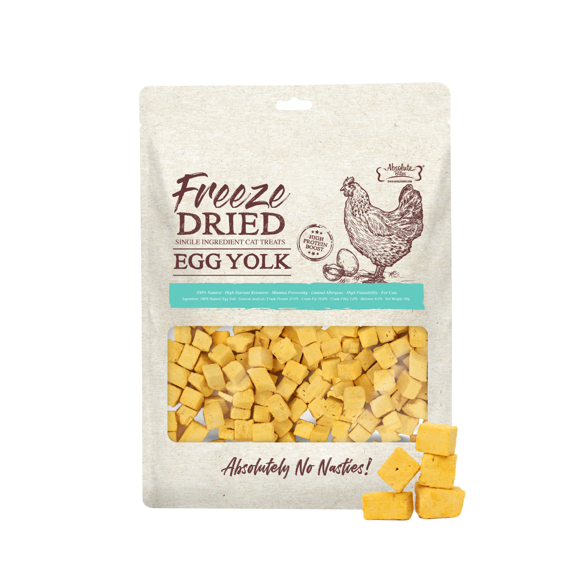 Absolute Bites Single Ingredient Freeze Dried Cat Treats - Egg Yolk (60g)
