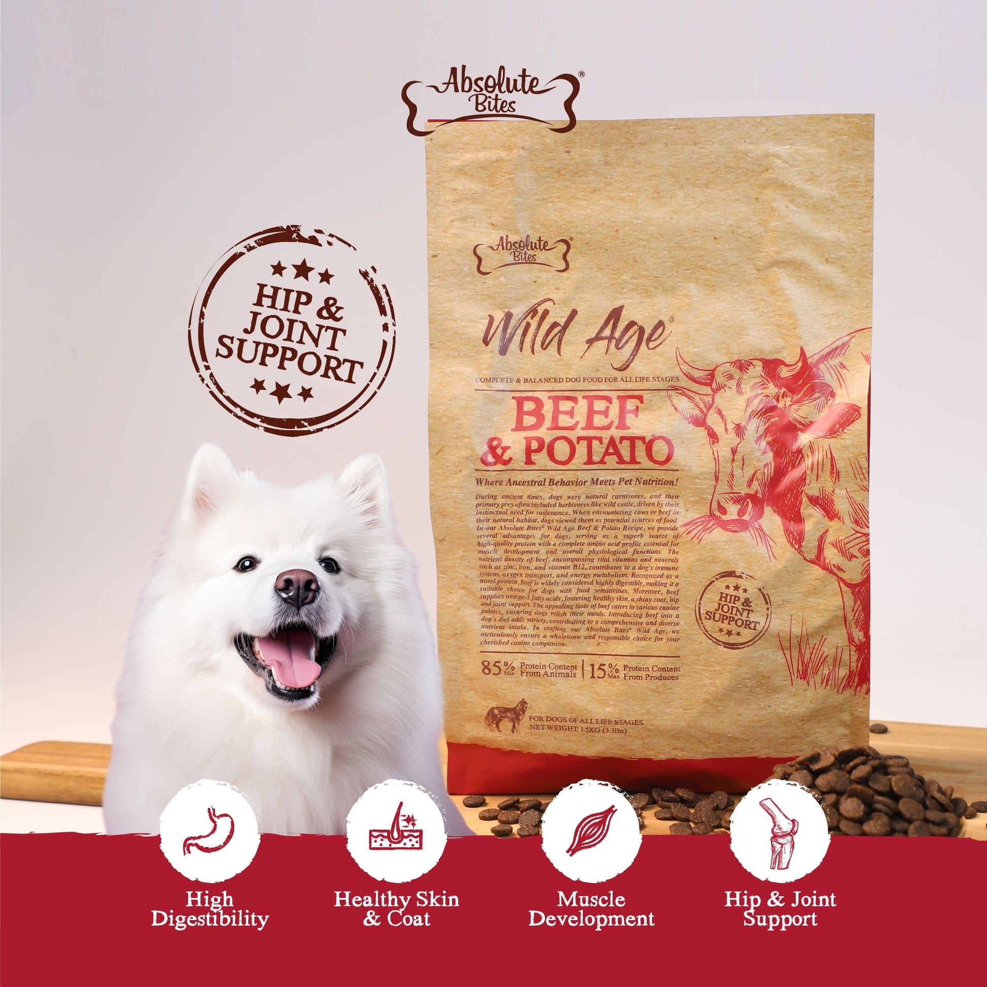 Absolute Bites Wild Age Dry Dog Food - Beef & Potato (3.3lbs)